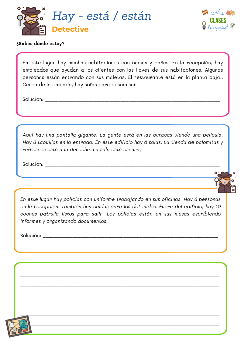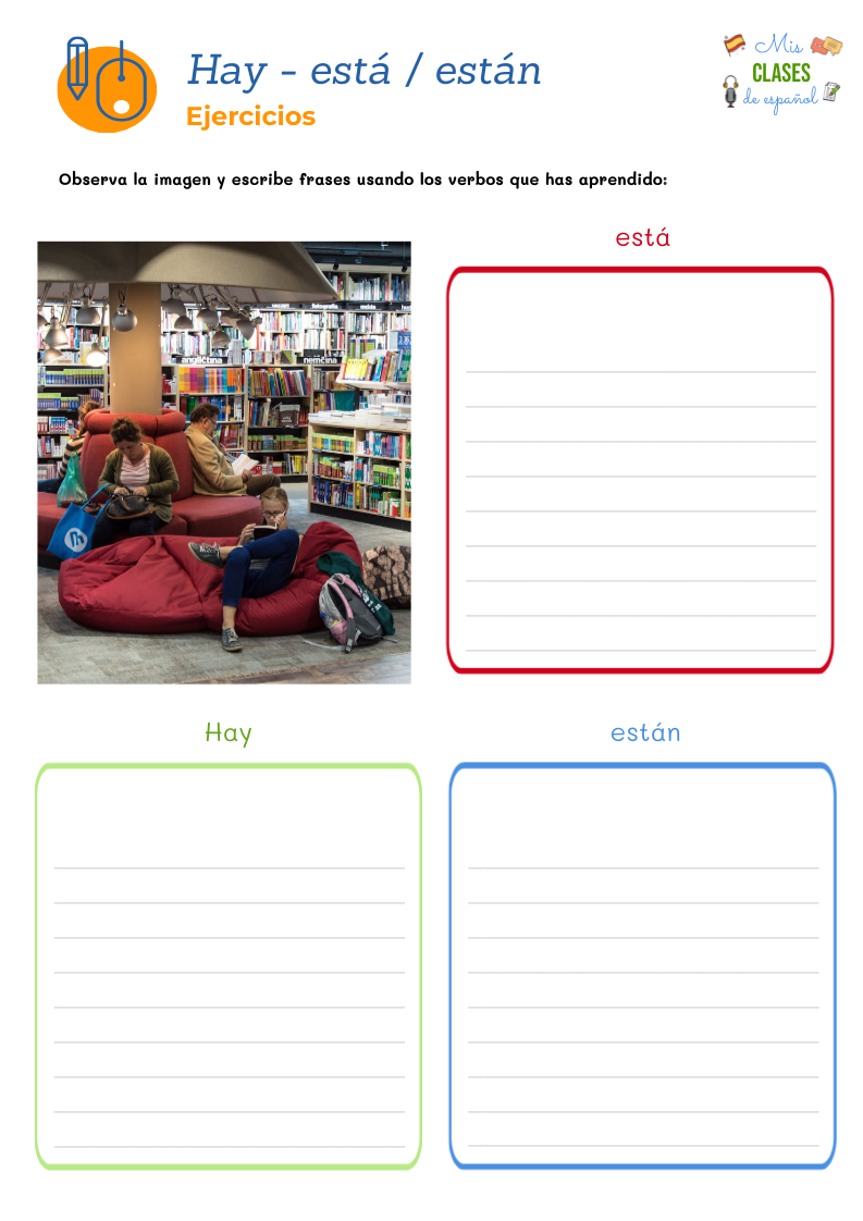 Con este material es uno de los que más me habéis pedido. Con él, podrás ayudar a tus estudiantes a comprender y practicar el uso correcto de «hay», «está» y «están» a través de explicaciones claras, ejemplos ilustrativos para distinguir cuándo y cómo utilizar estas estructuras en distintos contextos.